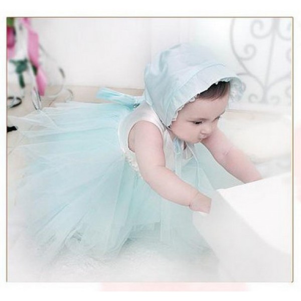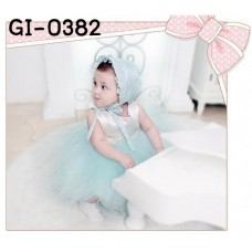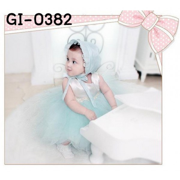 เดรสเด็กผู้หญิง ออกงานแขนกุดสีขาว กระโปรงฟูฟ่องสีเขียว (ไม่รวมหมวก)