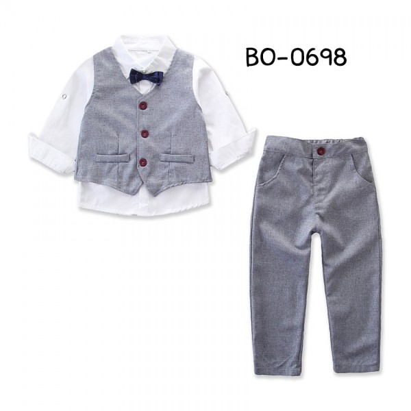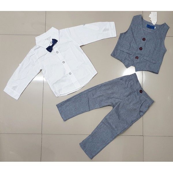 ชุดเซ็ทเด็กผู้ชาย เสื้อเชิ๊ตสีขาวติดหูกระต่ายกรมท่า + เสื้อกั๊ก และกางเกงสีเทา (3ชิ้น)