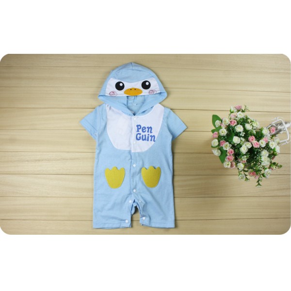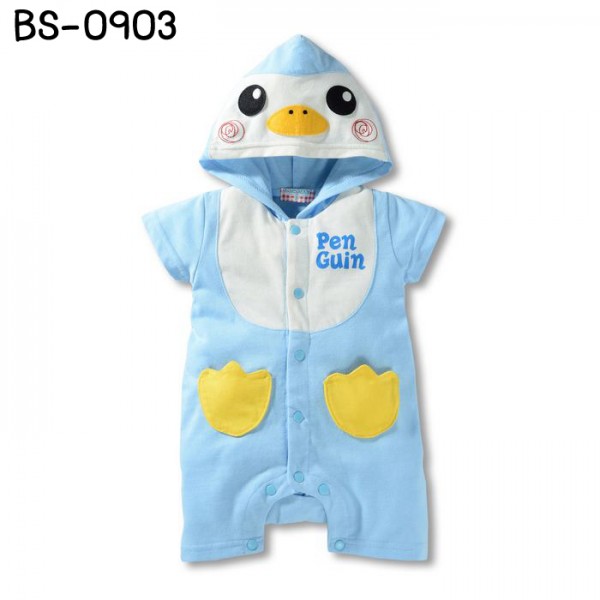 ชุดบอดี้สูทเด็ก แฟนซี แขนสั้น พร้อมฮู้ดหน้าพี่เพนกวิ้น Penguin สีฟ้า