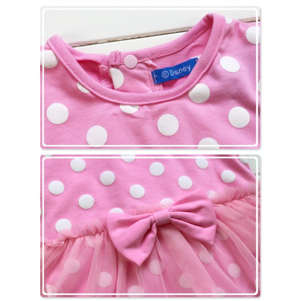 ชุดบอดี้สูทแฟนซีเด็กผู้หญิงแขนสั้น พร้อมผ้าคาดผมมินนี่เมาส์ Minnie Mouse สีชมพู (2ชิ้น)
