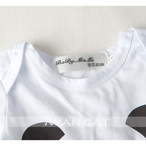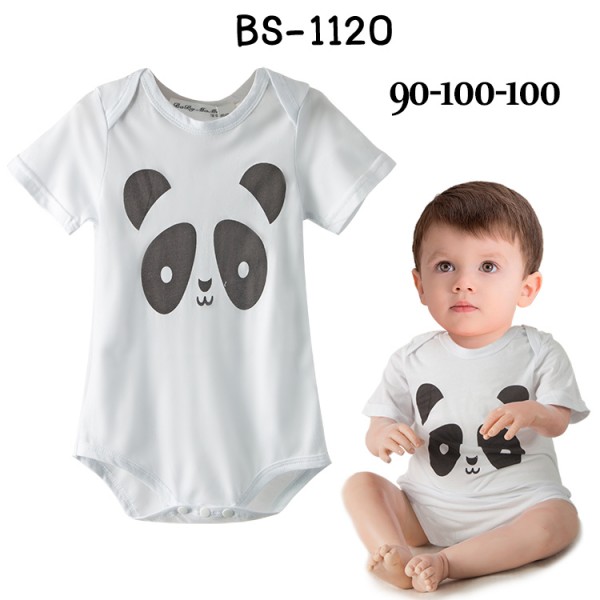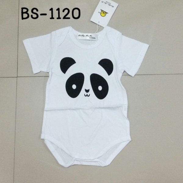 ชุดบอดี้สูทเด็ก แขนสั้น ขาเว้า สกรีนหน้าแพนด้า สีขาว