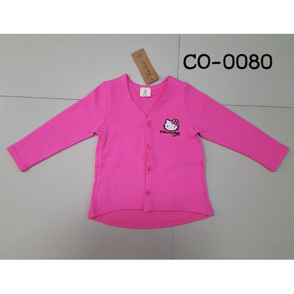 เสื้อคลุมกันหนาวเด็กผู้หญิง แขนยาวกระดุมหน้า ปักลายคิตตี้สีชมพูบานเย็น เนื้อผ้าคอตต้อนนิ่ม ยืดหยุ่นได้เยอะค่ะ เหมาะสำหรับคลุมกันหนาวในห้องแอร์ คลุมกันโป๊ก็ได้ค่ะ ทรงสวยเก๋ ชายด้านหน้าสั้น ชายด้านหลังยาวกว่าประมาณ 1 นิ้วค่ะ