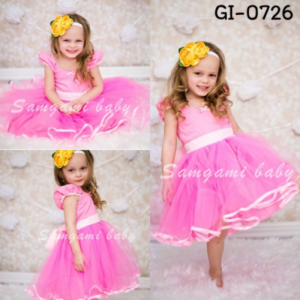 เดรสเด็กผู้หญิง ออกงาน แนวแฟนซีเจ้าหญิง กระโปรงฟูฟ่องสีชมพูเข้ม