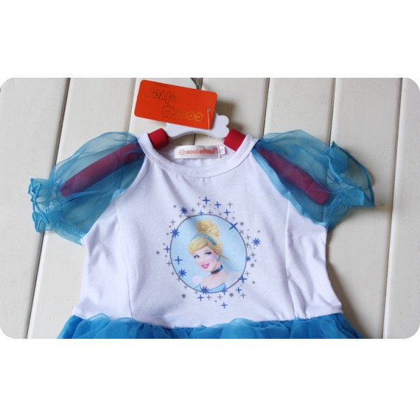 เดรสเด็กผู้หญิง ออกงาน แนวแฟนซี ซินเดอเรล่า สีฟ้าขาว