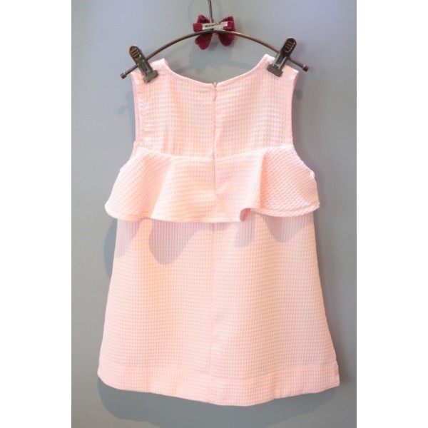 เดรสเด็กผู้หญิง แขนกุด ระบายช่วงอก สีชมพู ซิปหลังทรงเอ