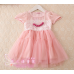 เดรสเด็กผู้หญิงออกงาน แขนสั้น แต่งลูกไม้ช่วงบน สีโอรส พร้อมสร้อยลูกปัด (2ชิ้น)