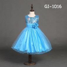ชุดราตรีเด็กผู้หญิงใส่ออกงานแขนกุดช่วงบนปักเลื่อม แต่งดอกไม้ที่เอว สีฟ้า