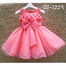 ชุดราตรีเด็กผู้หญิงใส่ออกงาน แขนกุดแต่งดอกบัวพับกลีบช่วงบน ติดโบว์ที่เอว สีแดงแตงโม ชุดนี้งานดีนะคะมีซิปและเชือกผูกเอวด้านหลัง ด้านในกระโปรงมีผ้าซับใน 2 ชั้นซ้อนไว้ด้วยสุ่มตาข่าย หากรีดสุ่มดีๆ กระโปรงจะบานพองได้เยอะค่ะ