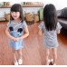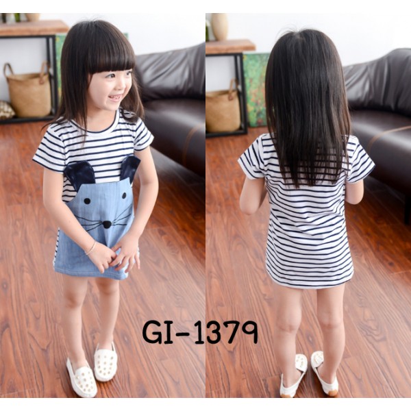 ชุดเดรสเด็กผู้หญิงคอกลมแขนสั้น ลายขวางหน้าหนูมีหนวด