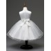 ชุดราตรีเด็กผู้หญิง ใส่ออกงาน แขนกุด แต่งเลื่อมเงินช่วงบนและโบว์ที่เอว สีบรอนซ์เงินผสมสีขาว มีซิปและเชือกผูกเอวด้านหลัง ด้านในกระโปรงมีผ้าซับใน 2 ชั้นซ้อนไว้ด้วยสุ่มตาข่าย หากรีดสุ่มดีๆ กระโปรงจะบานพองได้อีกค่ะ