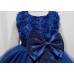 ชุดราตรีเด็กผู้หญิง ใส่ออกงาน แขนกุด แต่งกุหลาบช่วงบน ติดโบว์ที่เอว สีน้ำเงินเข้ม