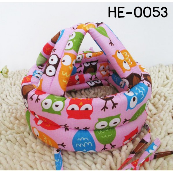 หมวกกันน๊อคเด็ก หมวกกันกระแทกเด็ก สีชมพูลายนกฮูกหลากสี (40-53cm)