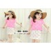 เดรสเด็กผู้หญิงแขนกุดลายดาว + เสื้อผ้าลูกไม้แขนสั้นเอวลอย สีชมพู (2ชิ้น)