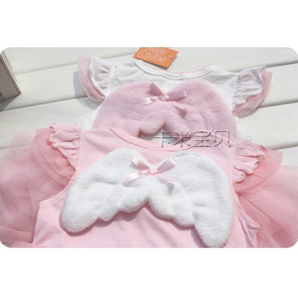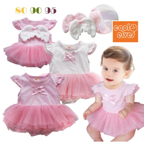 bs0300 ชุดบอดี้สูทเด็ก ติดปีกนางฟ้าสีชมพู (ถอดออกได้) กระโปรงฟูฟ่องสีชมพู เสื้อสีขาว