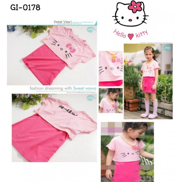 เดรสเด็กผู้หญิง แขนสั้น สกรีนหน้าคิตตี้ สีชมพู