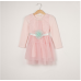 เดรสเด็กผู้หญิง ออกงาน แขนยาว แต่งไข่มุกที่คอ ริบบิ้นผูกเอว และเข็มกลัดดอกไม้ (ถอดออกได้) สีเขียว กระโปรงฟูฟ่องสีชมพู (3ชิ้น)