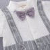 ชุดบอดี้สูทเด็กผู้ชาย ออกงาน แขนสั้น หูกระต่าย (ถอดออกได้) พร้อมเสื้อกั๊กลายทาง สีเทา (3ชิ้น)