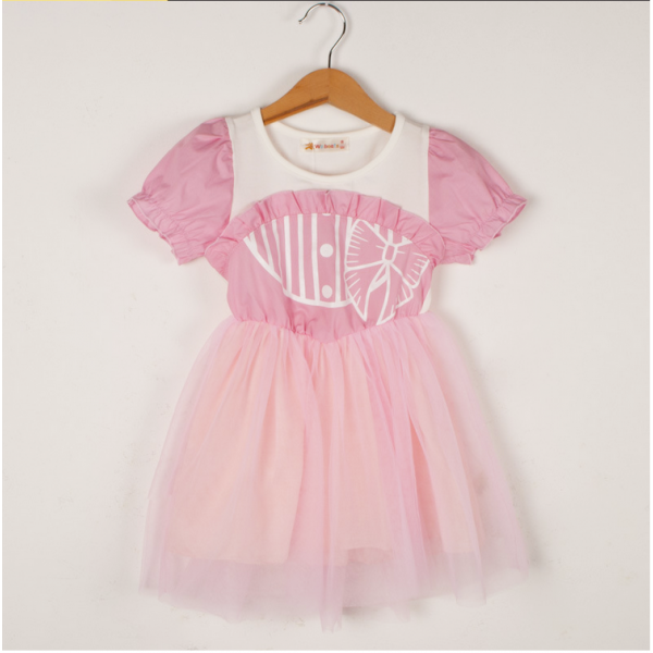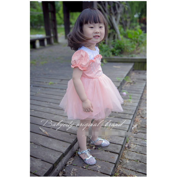เดรสเด็กผู้หญิง แขนสั้นจั๊ม แนวเจ้าหญิง กระโปรงฟูฟ่อง สีชมพู