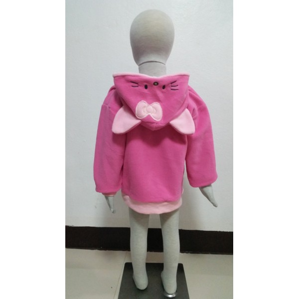 เสื้อคลุมกันหนาวเด็กผู้หญิง แขนยาวซิปหน้าพร้อมฮู้ด ลายคิตตี้สีชมพูเข้ม ผ้าสำลี