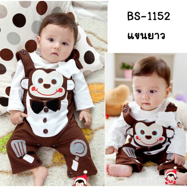 ชุดบอดี้สูทเด็กพ่อครัวลิงน้อยแสนซน 2 ชั้น ชั้นในเป็นแขนยาวสีขาว แขนซ้ายมีลายลิง เอี๊ยมสีน้ำตาลชั้นนอกลายพ่อครัวลิง ด้านหลังส่วนก้นสีแดง มีหางเหมือนลิงจิงๆ ใส่แล้วน่ารักมาก ชุดค่อนข้างหนาเหมาะสำหรับใส่ในห้องแอร์ สินค้าเกรดเอ งานดีค่ะ