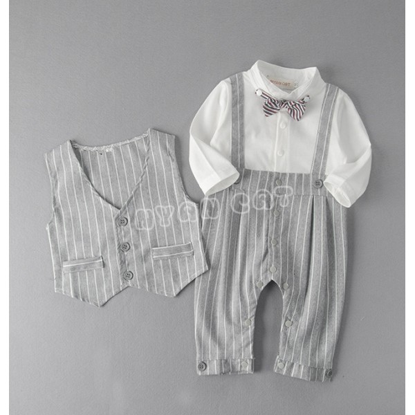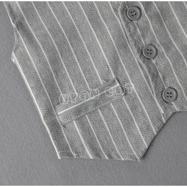 ชุดบอดี้สูทเด็กผู้ชาย ออกงาน แขนยาว หูกระต่าย (ถอดออกได้) พร้อมเสื้อกั๊กลายทาง สีเทา (3ชิ้น)