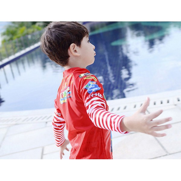 ชุดว่ายน้ำเด็กผู้ชาย แบบเสื้อแขนยาว กางเกงขาสามส่วน พร้อมหมวก ลายรถบัส TAYO (3ชิ้น)