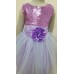ชุดราตรีเด็กผู้หญิงใส่ออกงานแขนกุดช่วงบนปักเลื่อม แต่งดอกไม้ที่เอว สีม่วงอ่อน