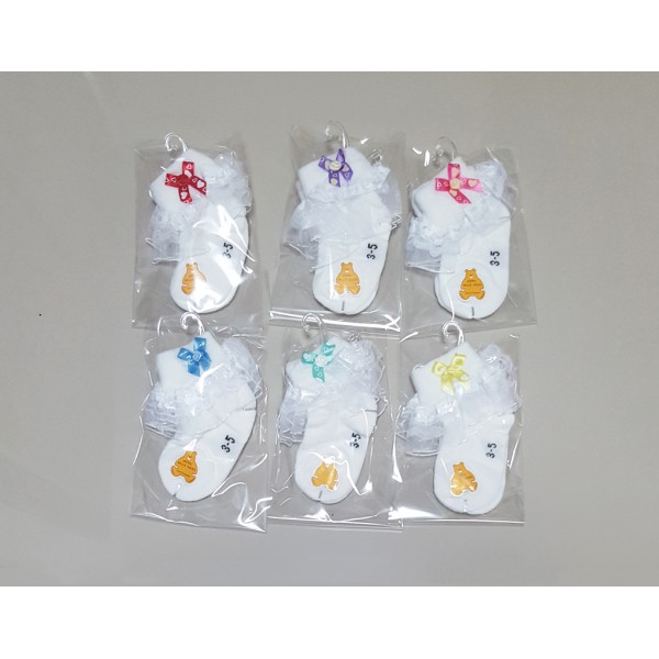 ถุงเท้าเด็กผู้หญิง ใส่ออกงาน ไซส์ 3-5 ขอบระบาย ติดโบว์ลายหัวใจและดอกกุหลาบ สีขาวล้วน (เลือกสี)