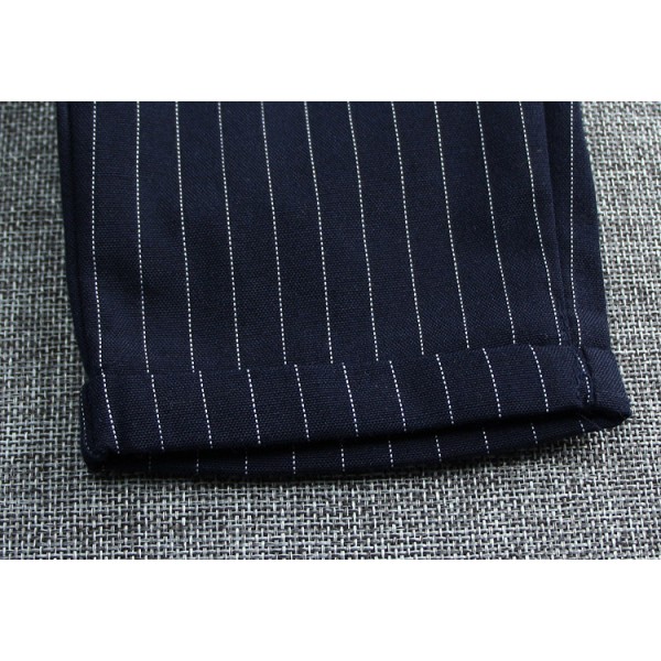 ชุดเด็กผู้ชายออกงาน เสื้อคอกลมแขนสั้นสีขาว กั๊กเย็บติด + หูกระต่าย (ถอดออกได้) + กางเกงลายทางสีกรมท่าเข้ม (3ชิ้น)