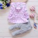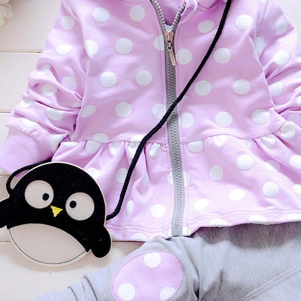 ชุดคลุมกันหนาวเด็กผู้หญิง เสื้อคลุมแขนยาวซิปหน้าพร้อมฮู้ดหูกระดิก กางเกงขายาวเอวยางยืด และสายสะพายเพนกวิ้น สีม่วง (3ชิ้น)