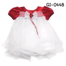 GI0448X << สินค้ามีตำหนิ >> เดรสเด็กผู้หญิง ออกงาน ช่วงบนสีแดง แขนสั้น ติดโบว์ กระโปรงฟูฟ่องสีขาว
