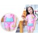 ชุดว่ายน้ำเด็กผู้หญิง แบบบอดี้สูท แขนขาสั้น ลาย Peppa Pig พร้อมหมวกว่ายน้ำ สีชมพู (2ชิ้น)