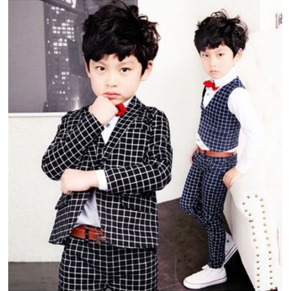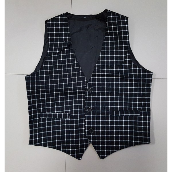 เสื้อกั๊กเด็กผู้ชายออกงาน ลายตาราง สีดำ