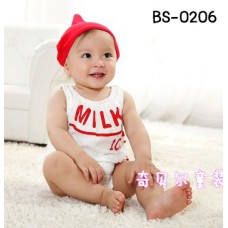 BS0206 ชุดบอดี้สูทแฟนซีเด็ก ลายขวดนมแขนกุดสีขาว พร้อมหมวกสีแดง (2ชิ้น)