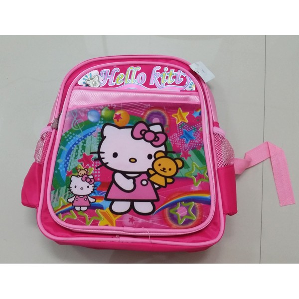 กระเป๋าเป้สะพายหลังเด็กลายคิตตี้ถือหมี สีรุ้ง