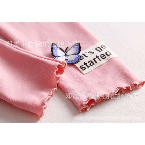 กางเกงเลคกิ้งเด็กผู้หญิง ขายาว ติดผีเสื้อที่ปลายขาขอบย้วย สีชมพูบานเย็น