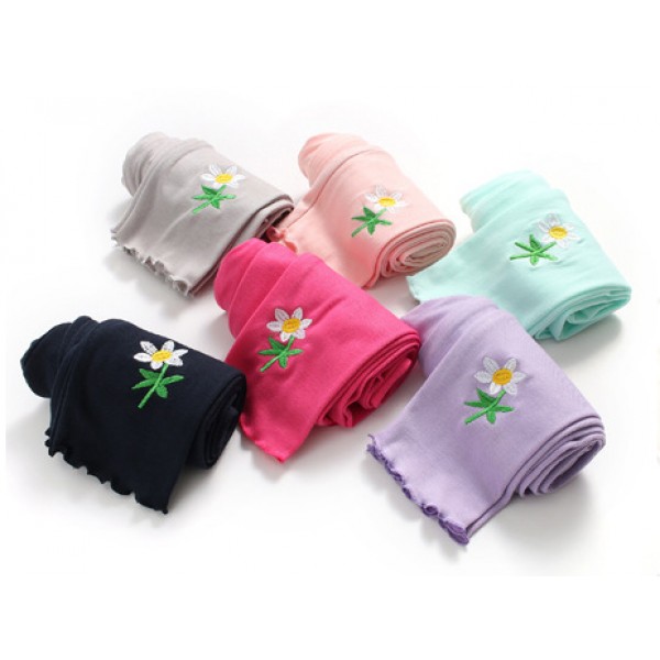 กางเกงเลคกิ้งเด็กผู้หญิง ขายาว ปักลายดอกไม้ สีโรส