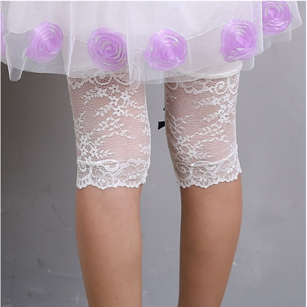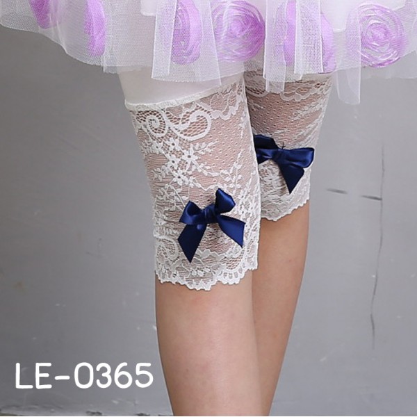 กางเกงเล็กกิ้ง legging เด็กผู้หญิง สีขาวปลายขาผ้าลูกไม้ ติดโบว์สีน้ำเงิน