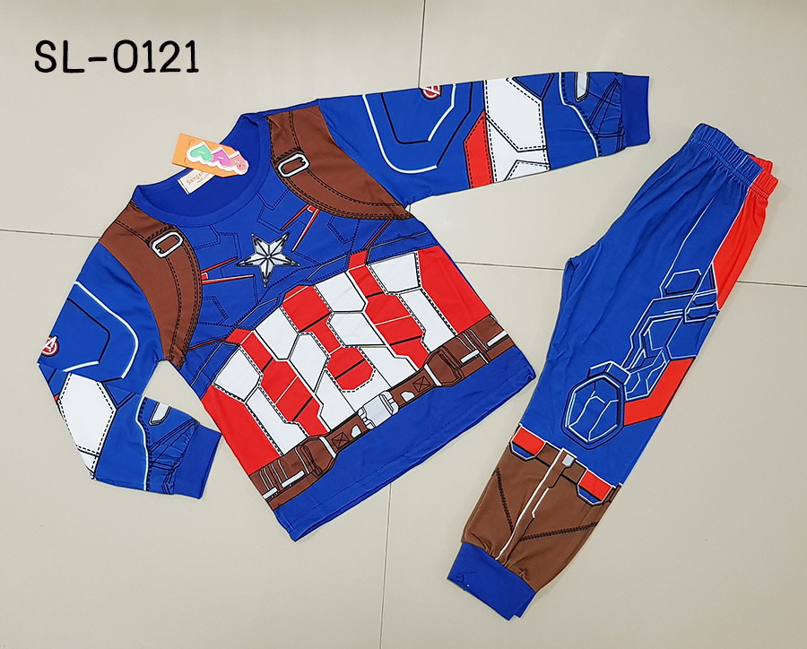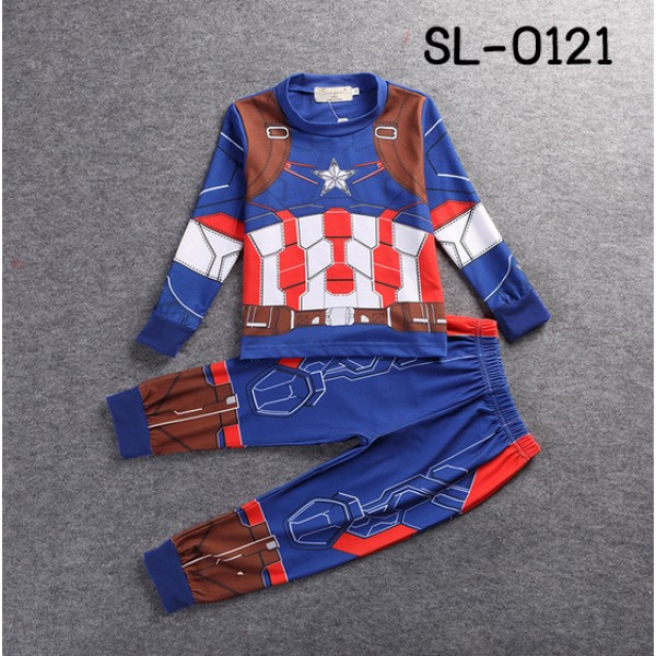 ชุดแฟนซีเด็ก ชุดนอนเด็ก แขนยาวขายาว ชุดนอนเด็ก แขนยาวขายาว ลายซุปเปอร์ฮีโร่ กัปตันอเมริกา Captain America (2ชิ้น)